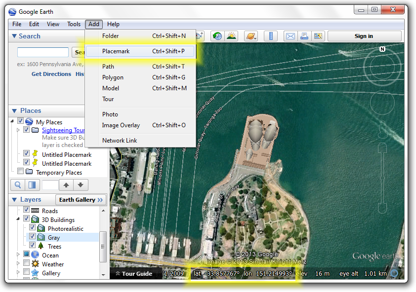 After you have copied and pasted the coordinates you can click Cancel to abort the Placemark process.
