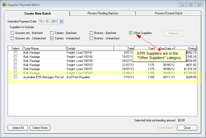 After the batches have been created, the net amount of the contra combined RCTI/Tax Invoice becomes available for payment in the usual way: