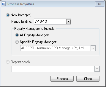 which opens the Process Royalties window: